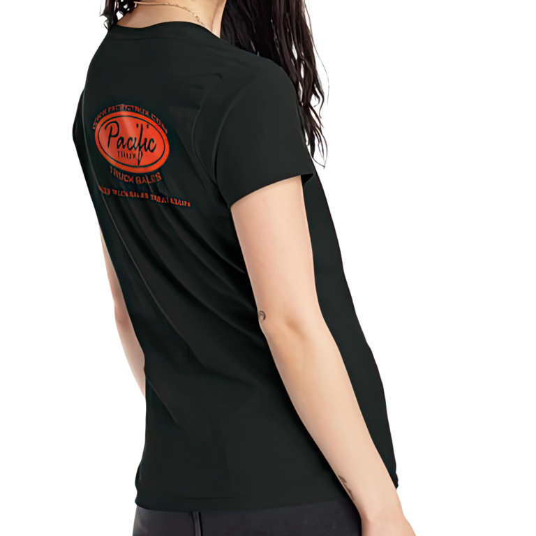 - “Making truck sales great again!” slogan under logo on back of shirt